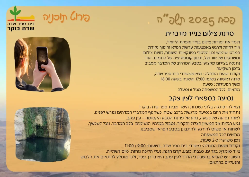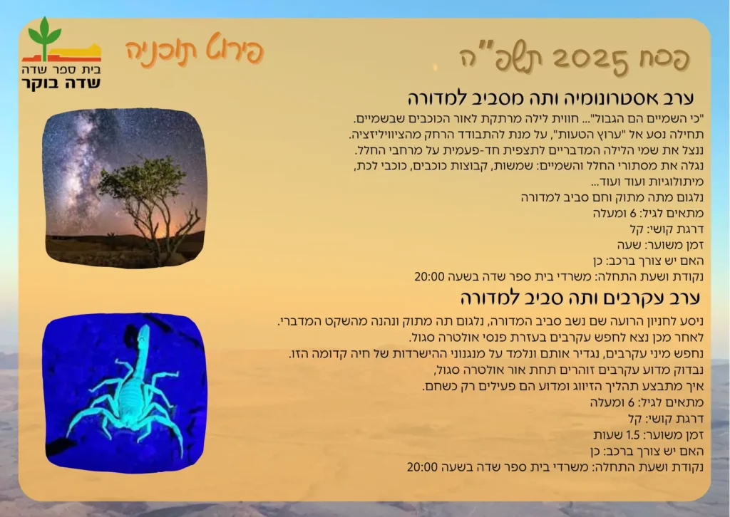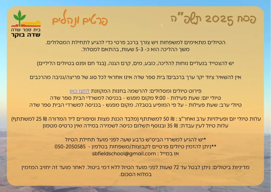 © כל הזכויות שמורות לבית ספר שדה, שדה בוקר 2025